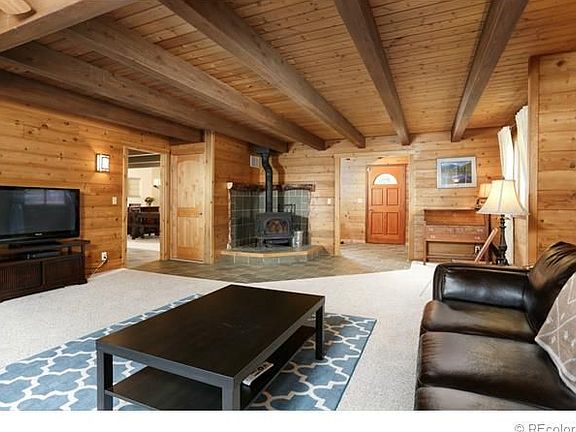 Beautiful Conifer Meadows home with wrap-around deck nestled on 2 acres with wooded area and a stream running through the property. The recently remolded kitchen is complete with stainless steel appliances, granite counters, island with eating space, gorgeous slate tile floor which opens to the light and airy dining room. The spacious family room has a wood burning fireplace that assists with heating the home with the newly added gas forced air system. Baseboard heating is still intact in bedrooms, but can easily be added into the HVAC system. Spacious entry, bright sun room, mud room and powder room complete the first floor. Second floor boasts a master suite, two spacious bedrooms, a full bath and reading nook. The unfinished walk-out basement is just waiting to be finished with roughed-in plumbing. This home is perfectly situated for easy snow melt on the driveway during the winter and fills the home with light year-round. New roof, newer furnace, new dishwasher, and newer carpets.