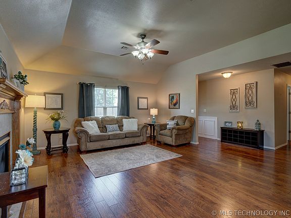 Located in Owasso schools district this home has recently added gorgeous new wood floors, plush carpet with extra pad. The master bedroom is oversized for relaxing before you get in the Jacuzzi tub. For the outdoor lovers there is an amazing deck for gorgeous sunsets that backs to a green belt. Newest Elementary School in Owasso - Morrow School