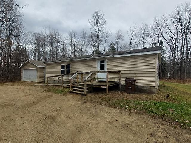 Take advantage of making some sweat equity. A little elbow grease would go a long ways in making this a home ready to move right in. Located not far off US 10, it sets on approx 2.5 wooded acres. Open floor plan with 3 beds and 2 baths. All listing info/measurements are approx.
