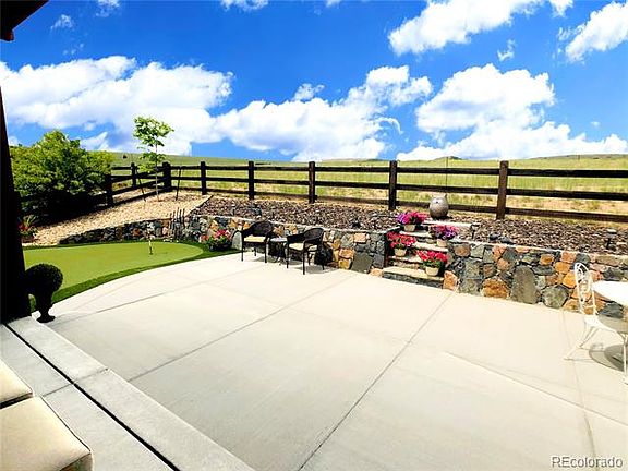 This Impressive RANCH Shows Like a MODEL HOME and is Low Maintenance Living at its Very Finest! Loaded w/Elegant Upgrades & Special Features at Every Turn. Including; A Stunning Open Canopy Kitchen w/Engaging Central Island, Gorgeous Upgraded Cabinets, Slab Granite, Full Backsplash, Gas Range & Stainless Steel Appliances! Extended Plank Wood Flooring*Plantation Shutters*Layered Stone Fireplace*Custom Lighting & Brushed Nickel Fixtures! Positioned on a Manicured Low-Maintenance Flat Lot w/3 Car Garage! Enjoy Comfort and Relaxation on Your Covered & Uncovered Outdoor Lounge, Perfect for Entertaining and Complete w/Putting Green! Just Steps to biking, trails & parks & walking distance to the new Reservoir. 7 Miles (11 Minutes to DTC) and Only 4.7 Miles (8 Minutes to I25 & Brand New Light Rail Station!) Easy to Show - Wonât Last!