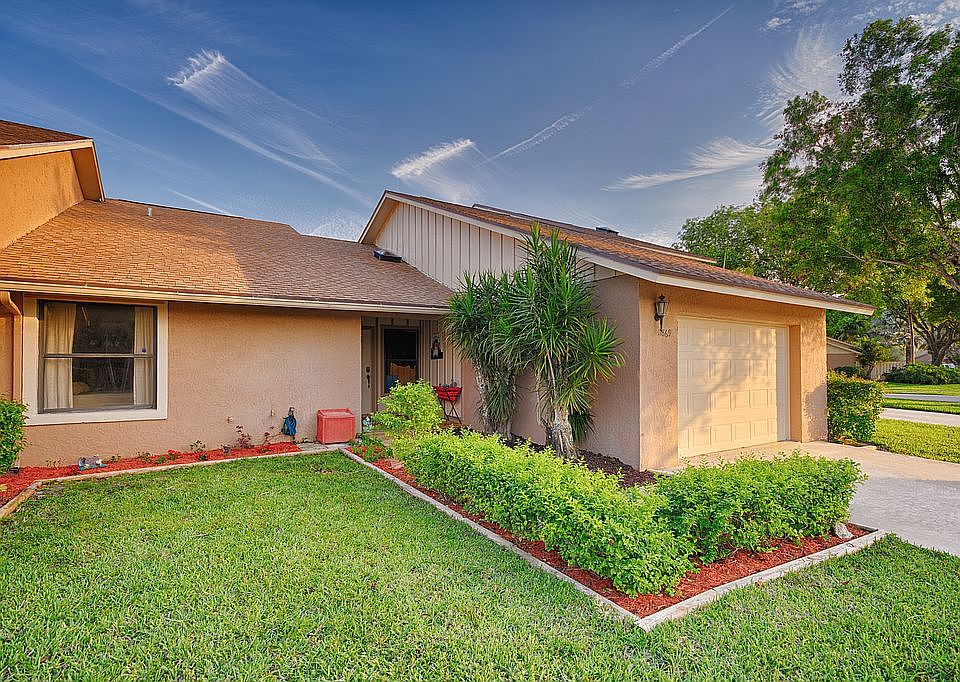 Spacious Wellington villa recently updated throughout. 2 BR plus a converted garage that could be used for a 3rd BR/office. This move-in ready home features a sizeable, unique craft kitchen with butcher block countertops, an extra deep double under-mount granite sink, convection oven, and 2 big pantries that provide more than enough storage. The enormous great room has vaulted ceilings, sliders that lead to the screened-in patio/yard. The Master suite is extra large and features patio access plus a barn door to the bath area, including dual granite vanities, a walk-in closet, a linen closet, and an oversized shower area. The 2nd bath features a 21' deep jetted tub. The bonus room has a large closet plus an additional 120 sq ft of storage in the garage. The tiled, screened-in patio leads to a sunny backyard with a gardening area and privacy. HOA includes pool, landscaping, and insurance. This pet-friendly community is within walking distance to the Wellington Amphitheater, The community center with Aquatics Complex, and the Publix shopping center. Close to the Mall at Wellington Green and equestrian areas. Wellington has top-rated schools. Property taxes shown are not correct it's $153 mth, 2020 taxes were $1835 w/homestead.