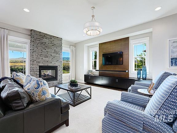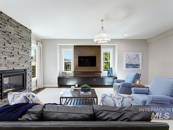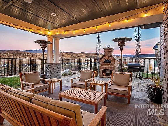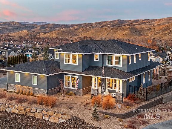 An elevated residential experience cradled by inspiring foothill views and over $100K in premier upgrades in North Boise. Perfectly positioned on a premium ~.41 acre view lot enveloped by Idaho's natural beauty, this exquisite residence is the ultimate at-home retreat while being less than 15 minutes to North Boise lifestyle attractions (and with lower property taxes!). Ridge-to-Rivers hiking/mountain biking trails and popular cycling routes are just moments away and the gateway to the North End is a beautiful foothills drive. Distinguished as the builder’s model home, every inch of the residence has been enhanced by custom treatments that stand out among the rest. The expansive flat lawn is primed for a personal pool if desired. The locale is fitting for outdoor recreation plus community living with a pool, clubhouse, and shops located within the community. Destination setting within Boise High boundaries. Set away on the main level, the grand primary suite has bedside views of the evening glow.