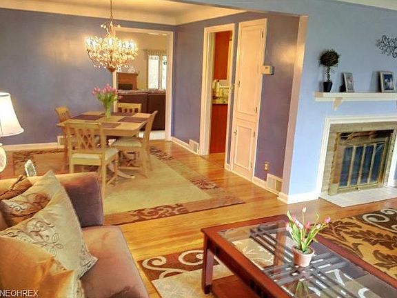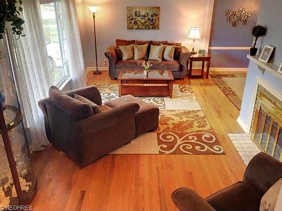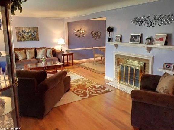 Don't miss out on this GORGEOUS home, located on one of Lyndhurst's most charming streets! This 4 bedroom, 1 and 1/2 bath home is full of updates and sure to fit all of your needs. Great open flow throughout! The living room, complete with a wood burning fireplace and great shelves, opens to the dining room. Enjoy the updated eat-in kitchen, with stainless steal appliances, and a pass through window. Both dining room and kitchen open to a huge family room, equipped with newer carpet, gas fireplace, vaulted ceilings, and plenty of natural light from skylights, windows and a sliding door, leading to your outdoor oasis. Beautiful hardwood floors throughout the home excluding the Family Room and Master Bedroom. Upstairs, enjoy the huge master bedroom, full bath, and 3 additional bedrooms, with new carpet! Finished basement! Outside enjoy the professionally landscaped yard, patio, shed, 2 car garage and NEW siding! Lovely turn key home, ready for it's new buyer/s!