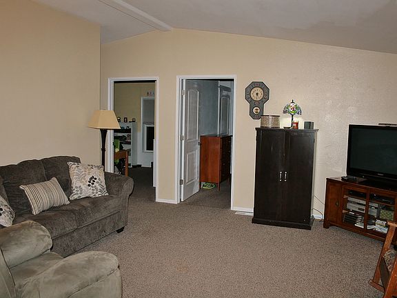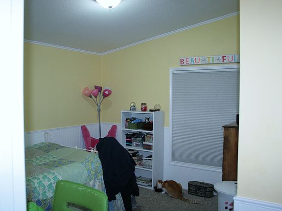 Open floor plan, wheelchair accessible. New flooring in kitchen and both bathrooms. Fresh paint throughout. Attached garage with attic storage. Attached covered deck off back of house. Fenced back yard with a shed for storage and garden spots.