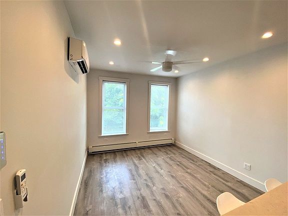 Welcome to 1187 Halsey Street. Beautiful boxed 2 bedroom with condo like finishes. The apartment features hard wood floors with a grey color very cool. Kitchen is equipped with dishwasher, microwave and all stainless steel appliances. All rooms have a central a/c unit lots of closet space and shelves through out. Main bedroom has a walk-In closet with lots of storage and lighting. Theirs 2 skylights inside the apartment which provides abundant of natural light. Heat and hot water is included with rent. Washer/dryer located in the lower level of the house just 1 flight down the stairs. Only cats are allowed.