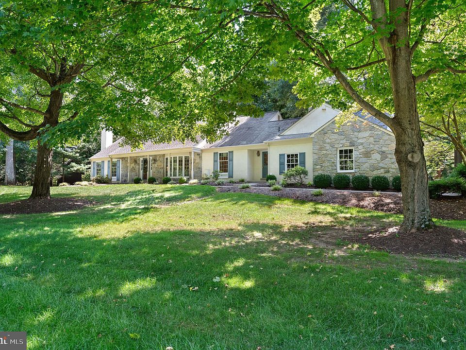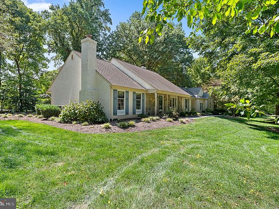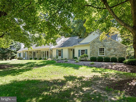 NEW PRICE! This exceptional custom-built stone and stucco Cape is located in the highly desirable community of Spring Meadows within the Unionville-Chadds Ford School District. The property has been meticulously maintained by its original owners and features a stunning two-story timber frame great room that opens seamlessly to the kitchen and family room, complete with a stone fireplace, making it ideal for gatherings and entertaining. Nestled on 1.7 acres, this four-bedroom, three-and-a-half-bath residence boasts beautiful hardwood floors, stone and brick fireplaces, exposed beams, and timber frame trusses. Upon entering, you are greeted by a two-story foyer that showcases hardwood flooring and abundant natural light, providing access to various first-floor rooms. The living room transitions effortlessly into the formal dining area, which then flows into the expansive kitchen equipped with wood cabinetry and a large island overlooking the great room. The great room features timber frame trusses, skylights, and a wall of windows that enhance the natural light and offer views of the deck and fenced yard. To the left upon entry, an office study includes a fireplace and built-in shelves, creating a comfortable space for work. The main floor primary bedroom includes an ensuite bath and a large window that overlooks the deck and surrounding woodlands. The first floor is completed by a laundry room and a half bath. A gracefully curved staircase leads to the second floor, which accommodates three additional bedrooms, one of which includes an ensuite bath. The lower level is partially finished, featuring a recreational or game room along with a spacious storage area. Additionally, a detached timber frame garage/barn provides an upper level that is well-suited for a home office or an entertainment venue. This building has its own driveway with extra parking. This location offers convenient access to major routes, West Chester, Kennett, Longwood Gardens, and nearby shopping and dining options.