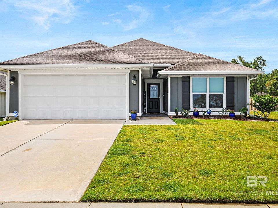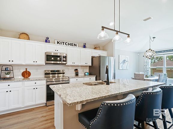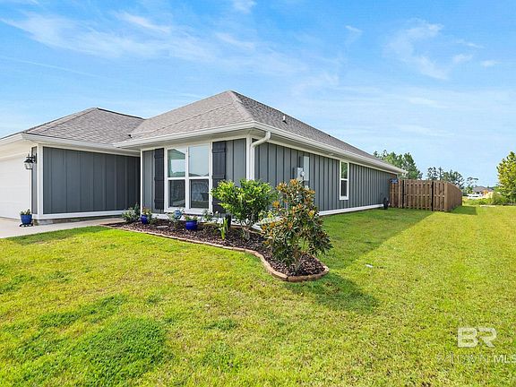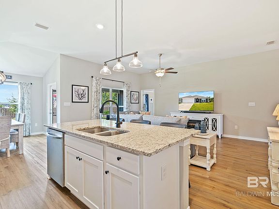 Built by Truland Homes in 2022, this immaculate home features upgrades galore! With 4-bedrooms and 3 bathrooms, there is room for everyone! This home is better than NEW with 10-ft ceilings in the main living areas! As you approach the front covered porch, you will notice the first of many upgrades beginning with the tiled front porch & an upgraded door. This spectacular floor plan features Custom shades throughout, high end 12mm LVP wood-look flooring throughout for easy maintenance and cleanup. Stainless steel appliances are featured in the kitchen, as well as painted SOFT-CLOSE Cabinets and Drawers & Granite countertops throughout, and a stainless-steel sink. The primary bedroom is located toward the back of the home for privacy and features upgraded pendant lighting, and a tiled shower with upgraded glass doors. Bedrooms 2 & 3 are located toward the front of the home and share a full bath which also offers an upgraded shower door. The 4th bedroom has it's own wing with an en-suite full bath with upgraded shower door. Ceiling fans in each bedroom makes for a restful cool nights sleep .Sit on the screened in back porch with tile flooring & sip your favorite beverage in the morning or evening under the cool breeze of the newly installed ceiling fan. The professionally landscaped oversized (60x167) lot, boasts beautiful flowering bushes, a 14x14 extended patio and a hurricane rated fence. Your yard will always look beautiful with the RainBird, 6-zone irrigation system. Gold Fortification may lower your home owners insurance. Complete with Fabric Hurricane Protection System. This SMART HOME features a RING Doorbell, Wi-Fi enabled garage door, outdoor security cameras, ADT security with door sensors and a motion detector in the dining room. Homeowners has spared no expense on upgrades and maintenance of this home. HVAC has been serviced twice a year. Utilities are provided by Riveria Utilities and internet is provided by C-Spire. Buyer to verify all information during