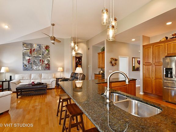 Small changes lead to big benefits in this Stonegate West maintenance-free single family home in a convenient 'age-targeted" community. You will appreciate the expanded gourmet kitchen with custom Hickory Cabinets and ample space for entertaining. There's Hardwood flooring throughout the entire first floor. Volume ceilings with recessed lighting and custom fans abound. The First-floor master suite features heated bath floor, custom vanity with Kohler's vessel sinks set on a granite top. The custom tiled shower boasts a heavy glass door/surround. 9' deep pour finished basement includes rec room, a wine cellar large enough to accommodate 2000 bottles plus a wine tasting area. The lower level affords an opportunity for in-law space since there is a full bath, second kitchen, walk-in closet and auxiliary laundry hook up. Sprinkler system plus a drip system for the flowerbeds. The 24' paver patio provides ample space for outdoor entertaining. This "must see" home won't last!
