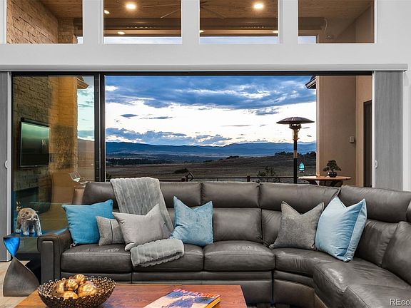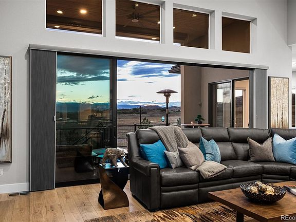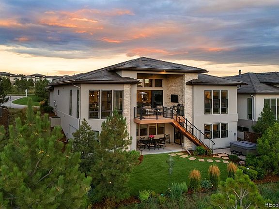 If you’re searching for sweeping mountain views and unparalleled luxury, you’ve found it at this picture perfect 4 bed | 4 bath residence that seamlessly blends elegance with functionality. On entry, the great room beckons with a NanaWall opening to Pikes Peak - Longs Peak views, an entire floor-to-ceiling tiled wall, and a 65" linear fireplace. The kitchen is stylishly outfitted with Sub-Zero and Wolf appliances. Thoughtfully designed, it further offers ample storage, a Sub-Zero wine fridge, walk-in pantry and coffee bar, all accented by quartz countertops. The amply sized dining room opens to an expansive covered deck with panoramic mountain views, tongue and groove ceiling, automated sunshade, and outdoor fireplace. The large, view-inspired primary suite offers a spacious custom closet and spa-like en suite bathroom with dual vanities, oversized soaking tub, enormous shower, and 4-sided floor-to-ceiling tiled walls. A rare feature, a separate main level guest suite with large bedroom, attached bonus room, and en suite bath is perfect for multi-generational living. A spacious glass-sided office, laundry room, and powder room finish the main level. The walkout lower level features enviable additional living space including a media room, recreation room complete with custom wet bar, 2 bedrooms, bathroom, and unfinished space to expand. The fully covered lower patio opens to a synthetic turf lawn, tranquil water feature, and Bullfrog hot tub. Offering indoor | outdoor living at its best and located in the coveted, gated Village at Castle Pines community, this residence features more upgrades than can be described here and must be seen to be fully appreciated. Within walking distance to restaurants, shops, a private adult gym | pool, and sports complex featuring another pool, pickleball and tennis courts, and an entertainment pavilion, this highly sought after lock and leave home offers everything you could ever want in a custom residence.