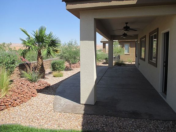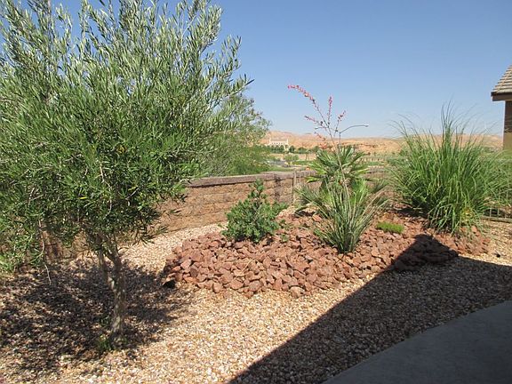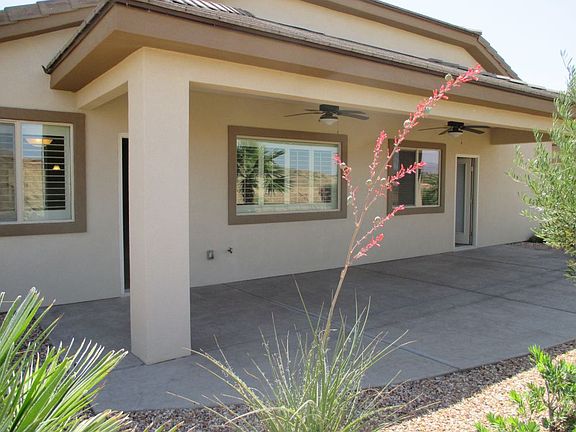 Welcome home to this nicely upgraded 3 BR, 2 BA beauty in Sorrento. This three year old home has been gently lived in, and looks brand new from the front entry to the lovely back covered patio and landscaped backyard. Built with indoor/outdoor living in mind, this home features highly sought after interior and exterior upgrades. Inside, you'll find 18" tile flooring in the entry, kitchen, baths, and laundry room, plantation shutters in the living and dining rooms, ceiling fans in every room, custom tiled showers in the guest and master bath, and matching granite countertops in both baths, laundry, and kitchen. The lovely kitchen features custom cabinets, stainless steel sinks and refrigerator, and upgraded pendant and recessed lighting. Outside, the large covered patio offers a relaxing retreat to take in views of the Virgin Mts., Canyons Golf Course, and desert vistas. Add to this the oversized truck-friendly garage and this home represents a great value in Mesquite.