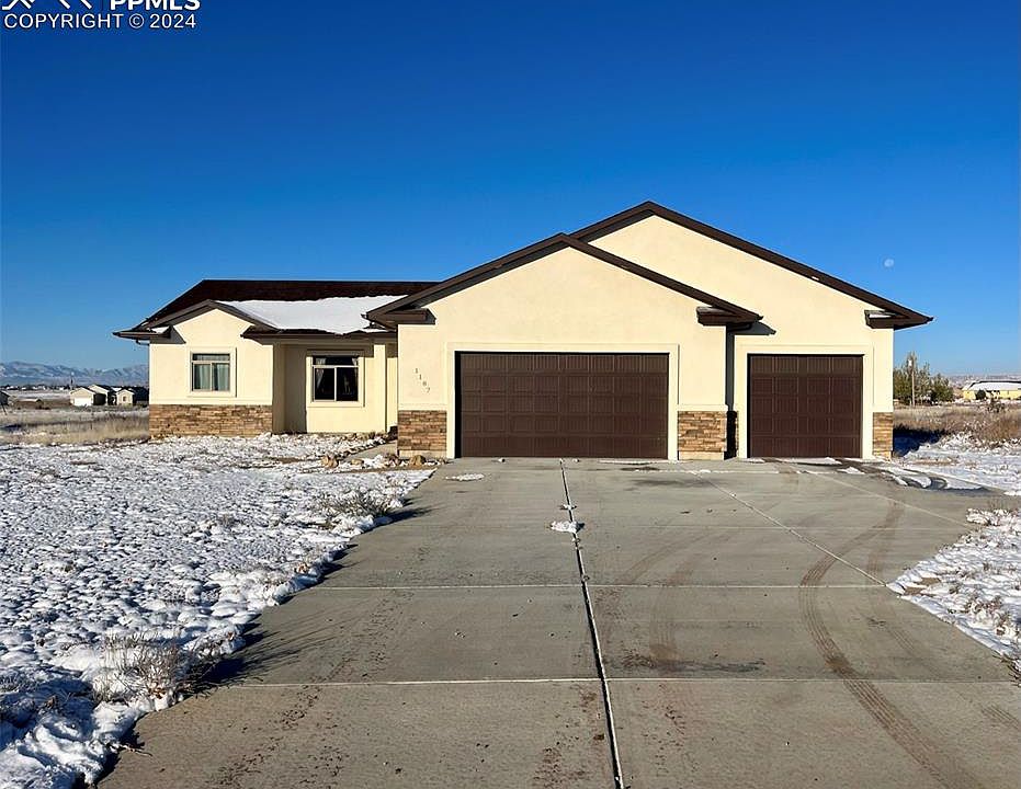 Immerse yourself in Colorado living in this stunning 3-bedroom, 2-bathroom ranch-style home boasting over an acre of land and breathtaking mountain vistas. This modern masterpiece offers convenient single-level living, perfect for those seeking ease and comfort. Step inside to an open floor plan flooded with natural light. The modern kitchen features sleek countertops, stainless steel appliances, with gas range, and a spacious center island – ideal for entertaining or whipping up family meals. A large pantry provides ample storage for all your culinary needs. Unwind in the luxurious master suite, complete with a beautiful 4-piece bathroom to melt away the day's stress. Two additional bedrooms and a full bath offer comfortable accommodations for family or guests. The fully-fenced backyard is your private oasis, perfect for barbecues, playtime, or simply soaking in the Colorado sunshine. Imagine relaxing on your patio, gazing at the majestic peaks that frame the horizon. Convenience is key! With a 3-car garage for all your vehicles and toys, and a location just minutes from I-25, this home offers the perfect blend of tranquility and easy access to the city. Don't miss your chance to own this slice of Colorado paradise!