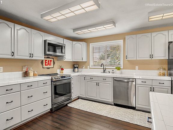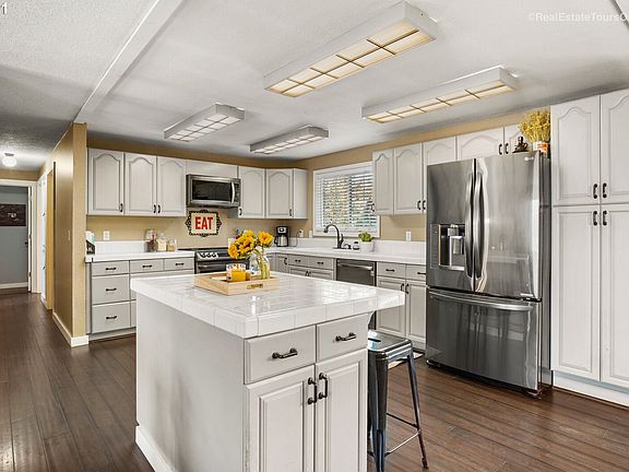 Wonderful Move-In Ready Home on a Quiet Cul-De-Sac! Welcome home to this great split entry home in a convenient Oregon City neighborhood. Open kitchen features an island, newer flooring, & beautiful Black SS appliances. Primary suite plus 2 other bedrooms on the main level. Lower level features spacious 4th bed/family room w/ceiling fans & a fireplace. Huge back yard features a shed, RV parking, multi-level deck, & newer fire pit. Close to shops & highly rated schools!