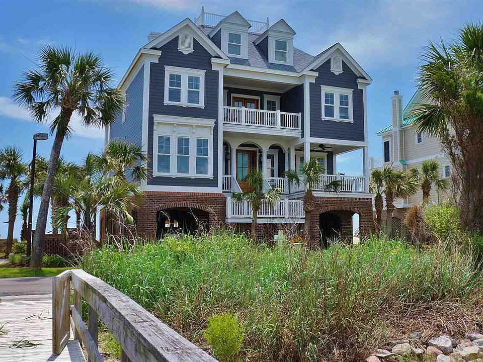 Nestled between the Atlantic Ocean and the Marsh Creek for beautiful sunrises and remarkable sunsets, is a home of exceptional character that awaits you and your guests. Oceanfront & creekfront with dock. Over 1350 square feet of covered, outdoor living space to enjoy those unobstructed sunrises & sunsets. Shore living at its best with shell hunting, paddle boarding, kayaking, swimming, fishing, surfing, boating and more. No detail or expense was spared with the astonishing remodel of this luxurious and comfortable home. An open floor plan where every room offers its own style and serene space with breathtaking views. The elevator offers convenience for any family member or guest that is fortunate enough to visit. Peninsula at Inlet Point offers a private pool and boat launch. There is plenty of space inside and out to just relax with the local convenience of activities for fun in the sun. The area is rich in wildlife that can be enjoyed during long walks on the beach or riding the bike trails. Huntington Beach State Park, Brookgreen Gardens and nine world class golf courses are minutes away. Just 30 minutes to Myrtle Beach International Airport and 1 hour to Historic Charleston. Seeing is believing. One of the most unique oceanfront locations on the East Coast.