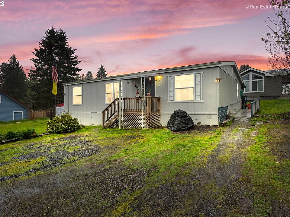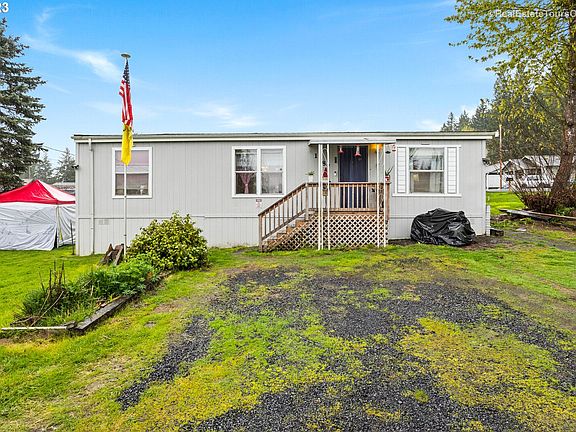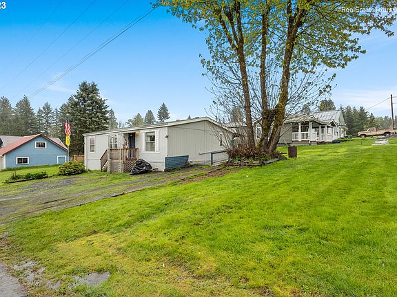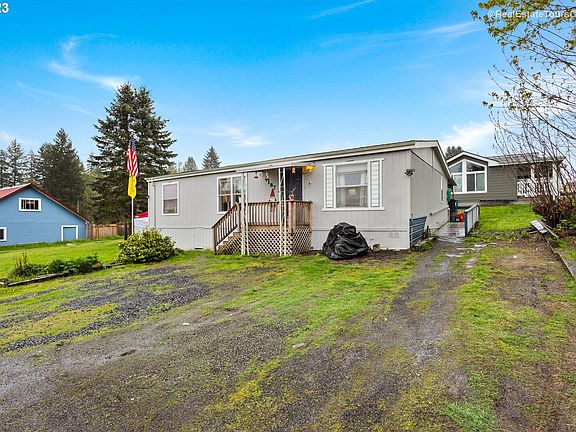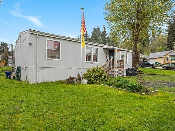 Welcome to this 3 bedroom, 2 bathroom, 1458 sq ft manufactured home on real property located outside of the flood plain right outside the heart of Vernonia. Enjoy small town living year-round from the covered back deck to the cozy light and bright open floor plan and close proximity to downtown Vernonia shopping, restaurants and hiking trails.. Interior highlights include large primary bedroom with walk-in closet and bathroom, open kitchen, vaulted ceilings, and interior laundry area. Exterior highlights include large covered back deck with ADA accessible ramp, large tool shed/workshop, large corner lot with ample opportunity to bring all your visions to life. Property has newer roof, exterior paint, water heater and tiedowns.