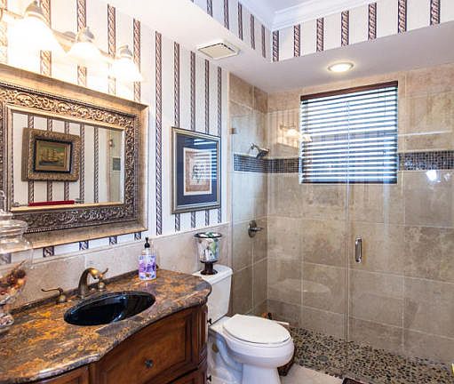 WOW! Majestic Royal Palms greet you as you pull into the long driveway in a quiet culdesac to this beautifully remodeled Estate home! 4 Bedrooms + office. Custom Designer kitchen with seamless granite counters and SS appliances.All 3 bathrooms are remodeled and are luxurious. Crown moldings! 18'' tile on a diagonal. Brand new carpet in 3 bedrooms. Brand new high efficiency Trane AC installed August 2017. Remodeled pool/patio area featuring custom built in summer kitchen and marble decking. 3 car garage with built in work bench and extra refrigerator. Lushly landscaped yard featuring Majestic Poinciana tree as well as oaks, avocado, mango & much more. Priced below recent bank appraisal for quick sale.
