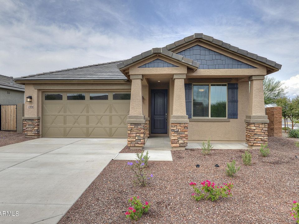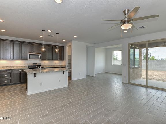 Located on a homesite facing the gorgeous Estrella Mountains, and surrounded by single story homes, call the Ellenton home by summer 2024! With a front porch perfect for early morning coffee while taking in the gorgeous Estrella Mountain views. The impressive entryway and hall lead to a bright kitchen with a center island and a spacious great room that opens to a covered patio, perfect for backyard barbecues. The split floor plan creates a private primary bedroom oasis. Additional highlights include and 8-foot garage door, ceiling fan pre-wire, and more! Located within the Estrella masterplan featuring 2 state-of-the-art Residents Clubs including fitness centers and pools, Starsplash Water Park, and a community lake with activities including boat rentals.