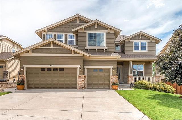 Absolutely stunning Ryland Champagne model that sits at the top of the hill and has amazing wrap around views! From the moment you step into the grand foyer you will be wowed by the designer finishes and beautiful spaces. Lovely open floor plan with formal living room, dining room with butlers pantry, main floor study, large family room that opens into a chefs kitchen with island, breakfast bar and eating space. Maple cabinets, granite tile counters, upgraded appliances. Huge master suite with vaulted ceilings and a "spa" bathroom. Don't miss the master closet! Oversized secondary bedrooms all upstairs as well. What fun you can have in the amazing bonus/loft space upstairs. Full unfinished basement. Enjoy the Colorado fall on the trex deck with great views!