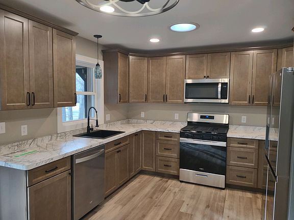 Beautiful farmhouse style 4 bed 2 bath home with finished lower level. Completely remodeled energy efficient home, warranties to transfer to new owner for roofing, windows, siding, HVAC and water heater. Large 2 car attached garage on one wooded acre. Enjoy the view from the rear screened in porch. Appliances included. Room sizes to be verified by buyer.