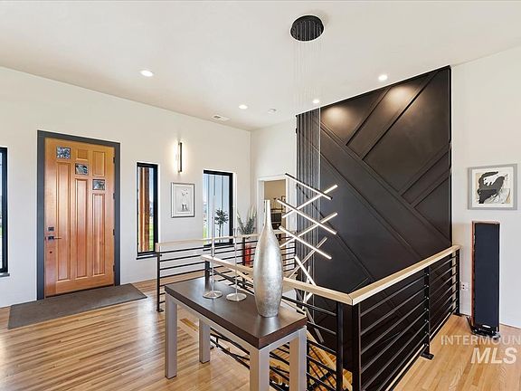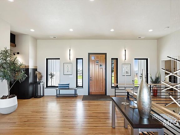 Rare opportunity to own a home on Chinden Ridge! Elevated above the Boise River w/panoramic views of the Boise foothills & Bogus Basin this charming modern farmhouse was completely rebuilt in 2020 w/thoughtful design & amenities you would expect in higher priced homes. Perched on .76 acres, this is a private oasis w/no neighbors behind you & no HOA. Enter the unassuming front to stunning interior & captivating views where a 16ft double slider leads to an elevated patio. Large windows span the main level so you can enjoy the remarkable setting. A warm cozy fireplace is central to the main living areas. The expansive kitchen boasts European style cabinetry & granite leathered finish counters. The primary bedroom features patio access & a spa-like ensuite w/heated floors, quartzite counters & walk-in shower. Downstairs, the walk-out basement includes 2 spacious bedrooms & family room w/large wet bar for entertaining. Additional features include a custom wine cellar, attached shop & deep garage w/EV outlet.