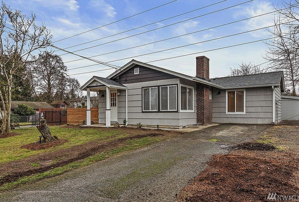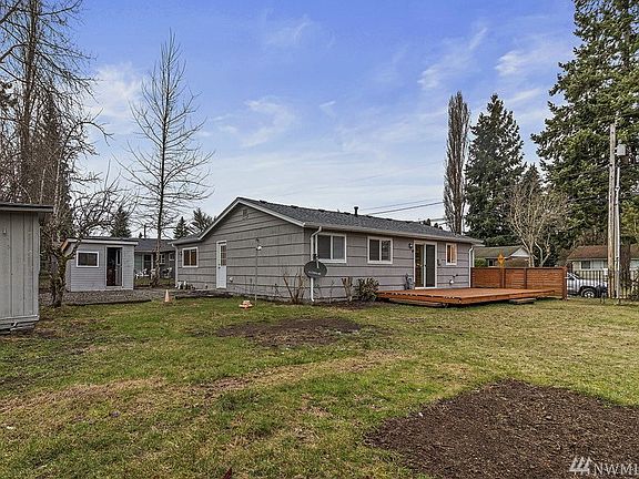 Fabulously remodeled 4-bedroom 2 bath one level home. Quality new roof. Lots of new windows to allow sun in. Open floor plan with cozy fireplace in living room. Hardwood floors throughout. Slab granite kitchen and 2 baths with cherry cabinets and tile floors. All new stainless steel appliances. Slider off dining area leading out to the large deck, great for BBQ. Fully fenced spacious easy care yard, lilac , mature apple trees, roses, rhododendrons. 2 solid tool sheds. parking for RV or boat.