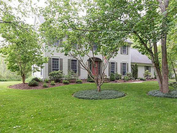 Impeccably maintained and pride in ownership. Custom details adorn this home. The fireplace mantel in the family room is salvaged from a century home in Cleveland, random-width oak floors and custom moldings carry throughout in the spacious living and dining rooms. Enjoy the view from the floor to ceiling windows on the first floor. The eat-in kitchen (2006) features a breakfast bar, interior cabinet lighting, stained glass accents, and stainless steel appliances(2015).Finishing the first floor is a den with grasscloth wallpaper and laundry room. Upstairs features four large bedrooms all featuring built-in bookcases and generous closet space. The Master bedroom has a private bath with garden tub and walk-in shower (2017). Connected to the master is a skylighted bonus room, great for a private office. Rounding out the upstairs is a renovated hall bath(2016). This home offers over 3 acres of wooded country living and privacy while being completely accessible to suburban life. Perfect for entertaining indoors and out. The finished basement has a bedroom, kitchen and full bathroom. A thoughtfully landscaped backyard is complete with tri-level herringbone brick patio, a large screened gazebo, and large shed. The 2+ car garage has hot/cold water allowing you to wash your cars indoors! Other updates include newer roof (2008) security system, wiring for portable emergency generator featuring one outdoor connection, a whole house humidifier and high-efficiency air filter.