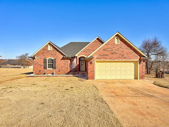Welcome to your dream home at 11876 Coyote Run, Guthrie, OK 73044! This charming 3-bedroom, 2-bathroom residence is a haven of comfort and style, situated on an expansive over .5-acre lot. Boasting a new roof and gutters installed in 2021, along with the modern convenience of a new tankless water heater and a water softener, this home is both reliable and sophisticated. As you step inside, the high ceilings create a spacious and inviting atmosphere, complemented by fresh paint throughout that adds a touch of elegance. The living areas feature beautiful engineered wood floors, providing a warm and timeless aesthetic. The heart of the home is the cozy living room featuring a wood-burning fireplace – recently cleaned in 2022 – perfect for creating warm memories with family and friends. The well-appointed kitchen showcases beautiful granite counters, a new garbage disposal, modern appliances, and plenty of storage, making daily tasks a breeze. Imagine culinary adventures in this functional space that seamlessly blends style and functionality. The master bedroom is a true retreat with a large 4-piece en-suite bathroom and a walk-in closet. Pamper yourself in the spa-like atmosphere of the master bath, creating a serene escape within your own home. Step outside to discover the paved roads leading to your property, providing easy access and a smooth arrival. The black chain-link fence encloses the backyard, offering both security and a contemporary aesthetic. Two peach trees in the backyard add a touch of nature, providing delicious fruit for your enjoyment. Store your mower and lawn equipment conveniently in the shed. Entertain or relax on the large covered patio, a perfect space for outdoor gatherings. From the patio and dining area window, enjoy enchanting views of deer and wildlife, adding a magical touch to your daily life. Don't miss the opportunity to make 11876 Coyote Run your new address. Schedule your showing today and make this house your home!