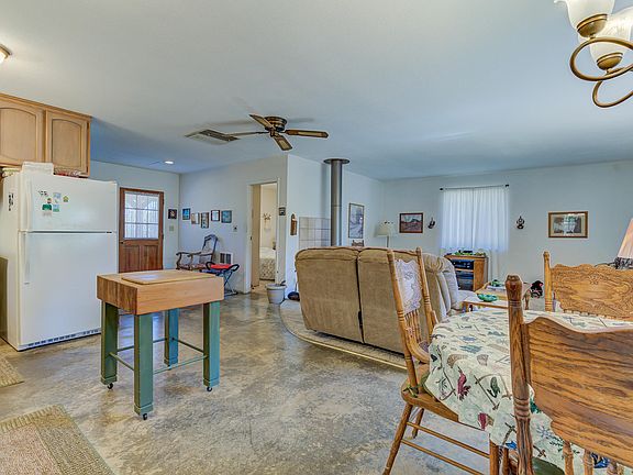 Country living close to town. This Cute country charmer sits on 2 flat useable acres with several outbuildings and fruit trees. The home features open floor plan, with concrete floors, wood burning fire place and spacious living room. Plenty of room to expand, garden and or livestock.