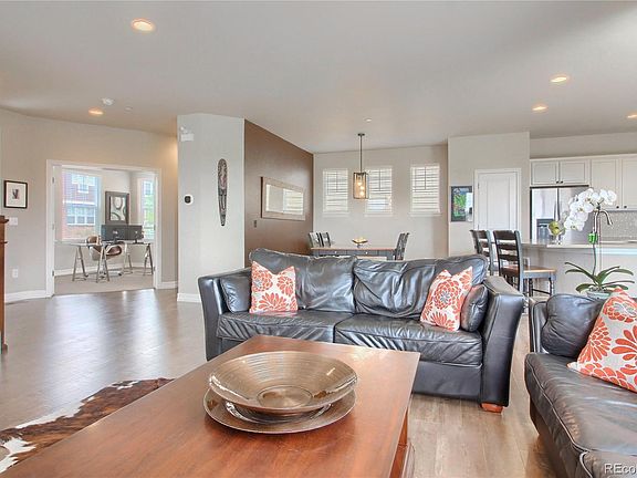 Elegant & spacious home in coveted Bradburn East lives much larger than it appears! Ideal 3bd floorplan is highly sought after because it adds a main floor study and giant upstairs bonus room! Dreamy modern updates throughout that even the most discerning buyers will appreciate. Cook & entertain w/style in this kitchen w/quartz counters, upgraded cabinets & stainless apps. Mosaic tile backsplash adds tasteful accent & the large island w/breakfast bar opens into great room w/cozy gas fireplace & lots of natural light. Convenient main floor study/den makes spacious home office/flex space & could convert into another bdrm. Spoil yourself in the 5pc master ba w/tile upgrades & classy finishes. 2 addt'l bdrms up + room to grow w/giant upstairs bonus room that makes great play/media space, or extra workspace. One of the most private lots in the neighborhood w/ no homes to the South overlooking open space and mountain views! BBQ or just relax in your fully fenced private back yard w/patio. Turf yard stays green year round and saves on water!! Bradburn East is conveniently located within walking distance to top rated schools, Whole Foods, dining, shopping and parks. Less than 1 minute to I-25, 15 min to Denver, 20 minutes to Boulder.