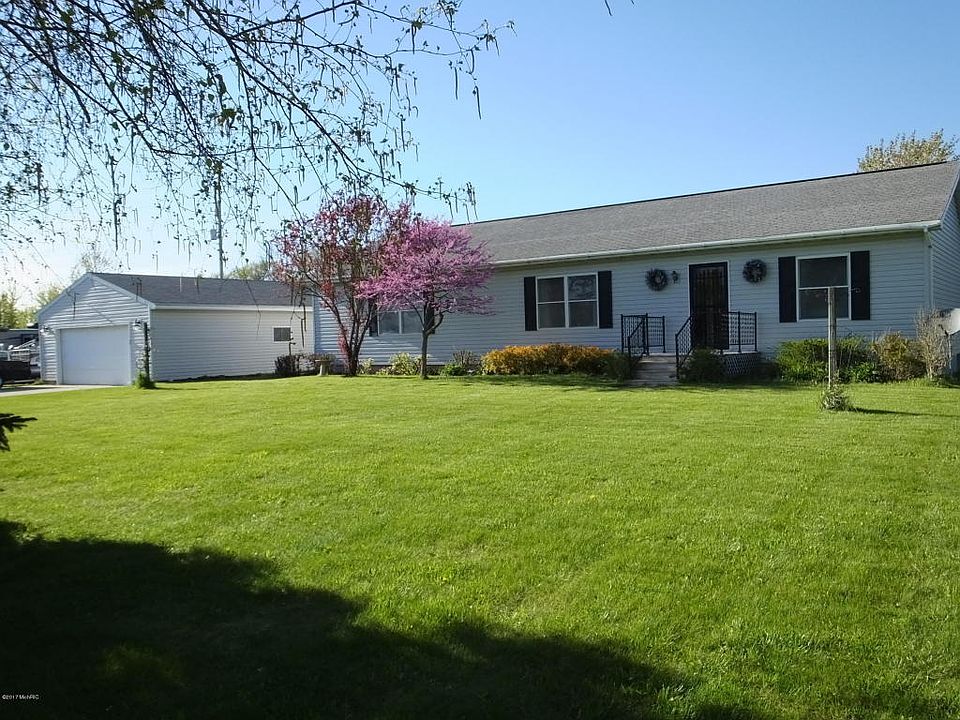 Beautiful 3 bedroom ranch with 1680 square feet on the main floor. 3.5 acres in the country with lots of privacy. Features include: custom designed kitchen with stainless steel appliances (stove & refrigerator - nego), great room with cathedral ceilings, massive master bedroom with private bathroom, separate shower and whirlpool tub, large deck for entertaining family and friends, central air, oversized garage - 960 square feet, beautiful flowering trees line the driveway, main floor laundry - (washer and dryer - nego) and more. Home qualifies for the Rural Development program with ZERO DOWN FINANCING. Show and sell!!!