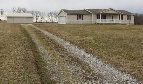 Fredericktown schools ... wonderful country ranch on 2 acres with a beautiful view, this home includes 3 bedrooms and 2 full baths, oak cabinet filled kitchen with center island adjoining dining area, large living room, main level laundry , enclosed sun porch, master bedroom with its own private bath, full basement, attached and oversized 2 car garage, detached 28 x 32 pole barn.