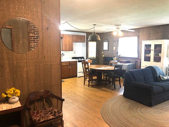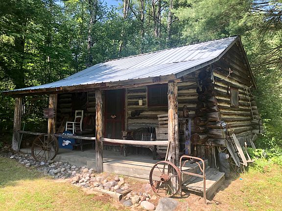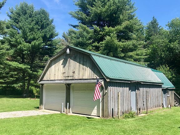 Over 10 acres of beautifully wooded property surrounding a charming 2 bedroom home, garage/ barn, workshop, and quaint 15X19 one room log cabin with electricity and wood stove. If you're looking for a peaceful setting, this is it. The fenced in garden area is outlined with grapevines, raspberries, and flowers. Mature apple trees are one of multi variety. The home and other buildings are being sold with many of the current contents in place. Metal roofs on all three buildings. The N 5 acres are primarily pine and the S 5 acres are maples and mixed wood. Great hunting property! Detached garage has a 20x16 workshop attached with living space upstairs. Welder and compressor convey with home sale.