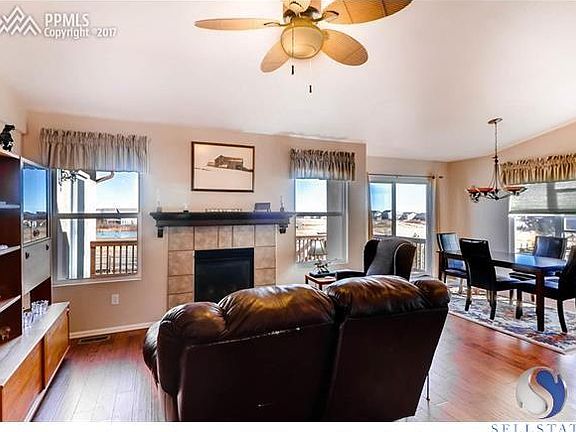 Immaculate 3334 sq.ft. 4 bed, 3 bath Stucco Ranch style home with Pikes Peak and Golf Course views in Woodman Hills. Wood floor throughout living room, dining room and kitchen. Living room fireplace. Central air, Ceiling Fans. Spacious carpeted Master Suite with walk in closet, adjoining 5 piece Master Bath with Soaker Tub.Access the large rear deck form the Master Suite or Living room dining area Oak cabinets throughout the kitchen, New L.G Refrigerator, New Samsung Convection oven, Built in Microwave, new Roof 2016.