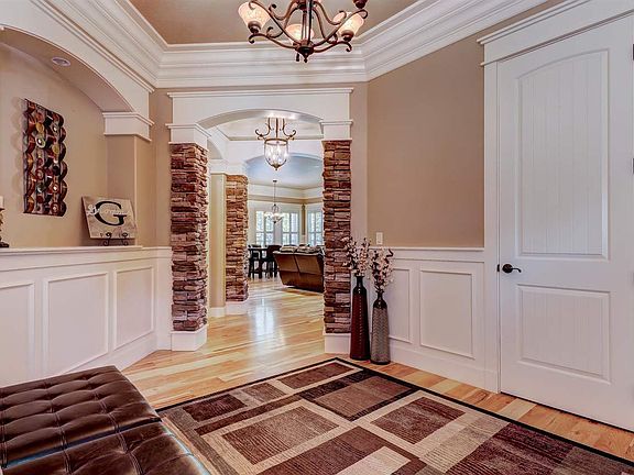 This former parade home is beautiful from the inside out! From the open concept chef's kitchen and great room to the views of the pond through huge windows w/ plantation shutters to the dramatic crown molding, you will be impressed! This home has it all: Grand entry, main level master suite, in-law quarters, spacious den, upstairs insulated theater room, additional beds/baths & secret playroom. 3 car garage with tons of storage. The backyard oasis is perfect for relaxing/entertaining with mature landscape!