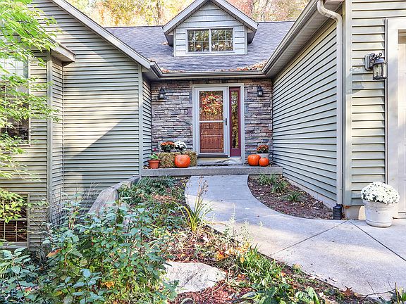 Custom built walk-out ranch full of upgrades ... location only minutes to everything! This 4 bedroom, 3.5 bathroom home is secluded in a canopy of trees on a quiet, dead-end paved road. Soaring vaulted ceilings and laminate hardwood floors are throughout the main level. Fireplace with stone-work, wrought-iron spindling, and covered deck with knotty pine ceiling add to the rustic charm. Kitchen features new stainless refrigerator, dishwasher, granite counters and tile back-splash. Cold toesin the winter? Not anymore! This home has radiant floor heating throughout the ENTIRE home, including the garage! No more getting into a cold car! Fully finished garage with corrugated metal wainscoting! Off the garage is a home office with it's own 1/2 bath and separate exterior entrance. Completely flexible to fit your needs, the finished walk-out basement features a living room, kitchenette, and 4th bedroom that's perfect for hosting out of town guests this season.