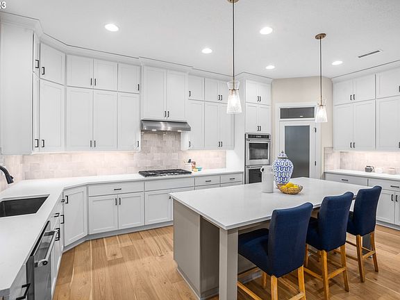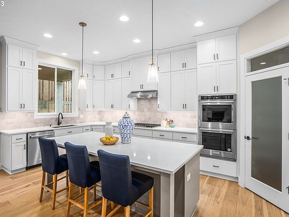 - Features: Gourmet Kitchen, Island, Pantry, Double Oven, Quartz, Wood Floors