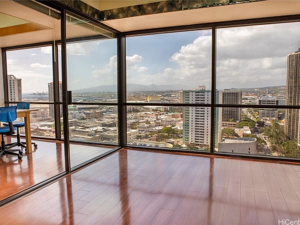 Located in the heart of Downtown Honolulu, this unit is vacant, move-in ready, and perfect for small businesses and private practice. This well-maintained 21st-floor unit includes two office spaces with a private bathroom and kitchenette. The floor-to-ceiling windows offer expansive views from Honolulu Harbor to the Koolau mountains. Conveniently located to many dining options, shopping, historic Honolulu, and Chinatown. Features include central AC, 24-hour security, and 1 unassigned covered parking. (businesses may provide validated parking for their customers) A conference table with 8 chairs and a filing cabinet comes with the unit. Unit is for business use only.