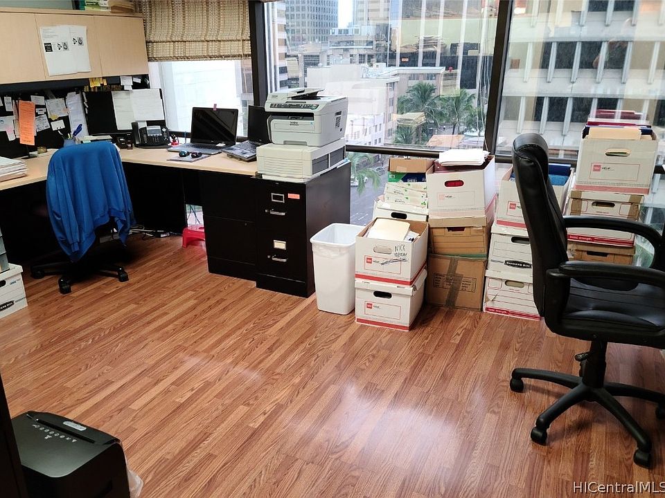 Rare to find executive style office. 400 SF, divided into 2 offices, 1 full bathroom, 1 unassigned parking. Premier A class office building, Conveniently located at corner of Bishop and Beretania St. Professional executive style office, with bathroom in the unit. 24 hour access with security office. Maintenance include water, hot water, sewer and janitorial service.