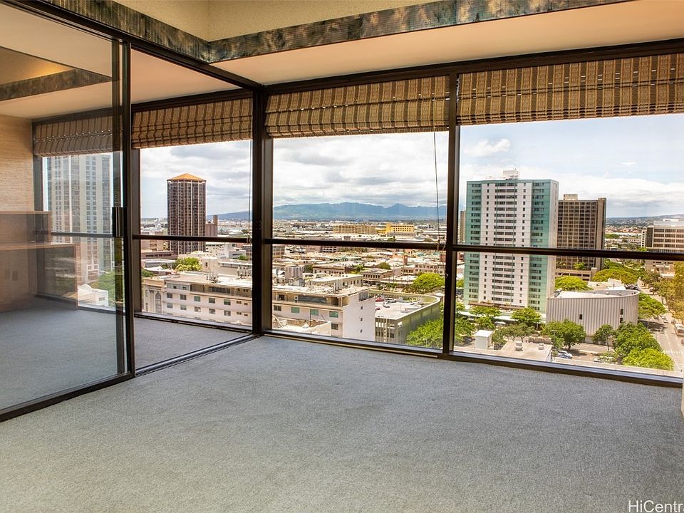 The floor-to-ceiling windows offer expansive views from Honolulu Harbor to the Koolau mountains. Conveniently located to many dining options, shopping,