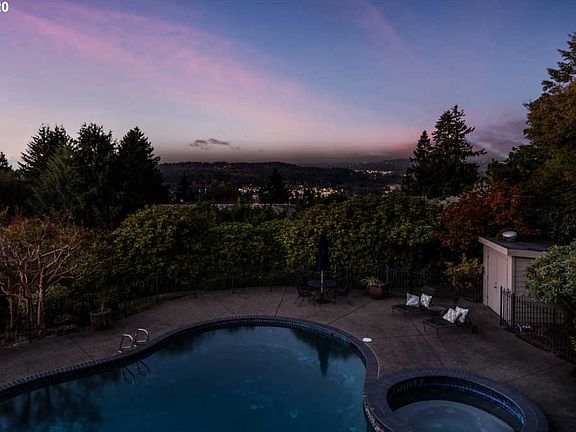 Stunning custom home situated on a rare private acre in one of Lake Oswego's best neighborhoods. Resort style living highlighted by breathtaking Mountain, Cityscape, and Willamette River views. Features include pool, hot tub, waterfall, sauna, theater room, gourmet kitchen, private master suite with his and hers walk in closets and oversized bedrooms with en-suites throughout.