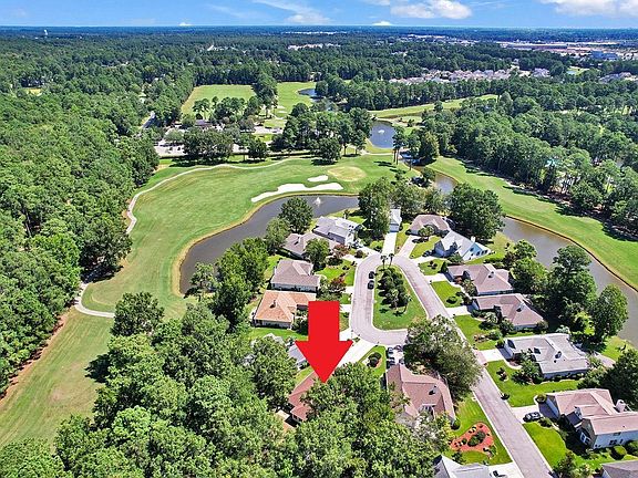 Recently updated and ready for you to move in! Welcome to this charming home that is situated on a spacious .31 acres overlooking the tee box on the 9th hole of the Cypress Course at Arrowhead Country Club! The best part is that it is ONLY 6 MILES FROM THE BEACH!! Tucked away on a cul-de-sac with beautifully landscaped island, this home is off of the main stretch and sits back from the road which allows for ample parking spaces. This 4 bedroom, 2 bath ranch home showcases a split bedroom floor plan with kitchen, great room and formal dining room in the center of the home. The kitchen has stainless steel appliances, work island, breakfast bar, pantry and eating area. The great room has a vaulted ceiling and fireplace. A lovely Carolina Room off of the great room is the perfect place to relax while enjoying the golf course views. The main bedroom is spacious with enough room for a sitting area - plus offers amazing golf course views. The attached on-suite has double vanities, soaking tub, shower and walk in closet. 3 bedrooms and spacious hall bath with double vanities complete the other wing of the home. The laundry room is conveniently located off of the garage entry door. The 2 car garage has workbench, fridge and organization racks that will all convey with the home. There is also a side door in the garage for convenient access to the yard. Hose spigots are located on the left and right of the home. Outside you will also notice the stone in the front beds in lieu of mulch which is a fantastic upgrade! The roof was replaced in 2016! The Arrowhead community amenities include a community pool, playground, tennis courts and security that drives the neighborhood. The Country Club within the community offers 3 9-hole golf courses called The Cypress, The Lakes and The Waterway. They also offer a chipping and putting area, driving range, bar and grill and pro-shop. Close to the beach, on one of the areas best golf courses with a large lot and great layout - this home won’t be on the market long. Hurry and schedule your showing today before it sells!