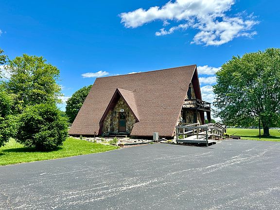 Welcome to your ideal home! This unique 3- bedroom and 2-bathroom A-Frame offers 1600 square feet of potential, sitting on 1.3 unrestricted acres of serene landscape. The stone and wood exterior gives the property a classic yet rustic charm. A detached garage provides ample space for storage or projects. the property has an old dairy milking parlor that could be a multipurpose building, while the unfinished basement offers endless possibilities for customization according to your needs. Enjoy year-round comfort with natural gas heat and central air, this detached gem is a rare find, offering both privacy and opportunity. Don't miss your chance to own this incredible property!!