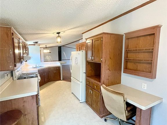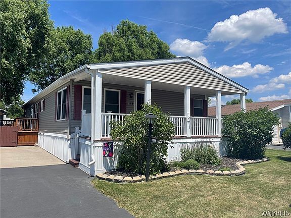 Absolutely pristine mobile home! This immaculate residence features 3 bedrooms and 2 full baths, including an ensuite primary with a double vanity, tub, and walk-in shower. The open floor plan boasts new flooring throughout, with plush new carpet in all bedrooms, complemented by a newly installed skylight (2024) and new shower in the second bath. Built for comfort and convenience, the home includes a wooden deck added in 2018, ensuring plenty of outdoor relaxation space. Also outside, the property offers a fully fenced yard for privacy, along with a 10 x 12 shed featuring a new roof installed in 2023. A doublewide driveway at the front provides ample parking, while a covered front porch invites you to unwind and enjoy the surroundings. The furnace and A/C were recently serviced (7/2024), and the hot water tank was replaced in spring 2020. This mobile home is located in a vibrant community where lot rent of $760 per month covers water and basic Spectrum cable. Residents enjoy access to a range of amenities including a playground, fitness center, community center, and more, making it an ideal place to call home.