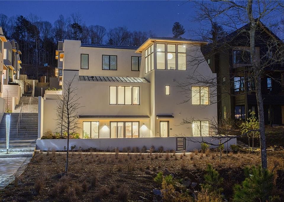 This modern hillside cottage in Serenbe’s Mado Hamlet offers stunning views of Mado Pond and is ready to welcome you home.Enter through the front courtyard into a welcoming foyer, then come onto the terrace level with its open living and dining area, plus a bedroom and full bath. Upstairs you’ll find the laundry area, the owner’s suite, and a third bedroom with bath. The top level, with vaulted ceilings and sweeping views of the treetops and pond, can serve as a fourth bedroom, office, or additional living space. Outside, the private courtyard is ideal for alfresco dining or simply enjoying the peaceful sounds of nature. All of Mado’s amenities—including Halsa Restaurant, the Spa at Serenbe, Bamboo Juices, and 20+miles of nature trails, are just a short distance away.