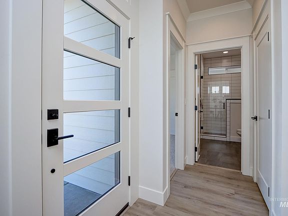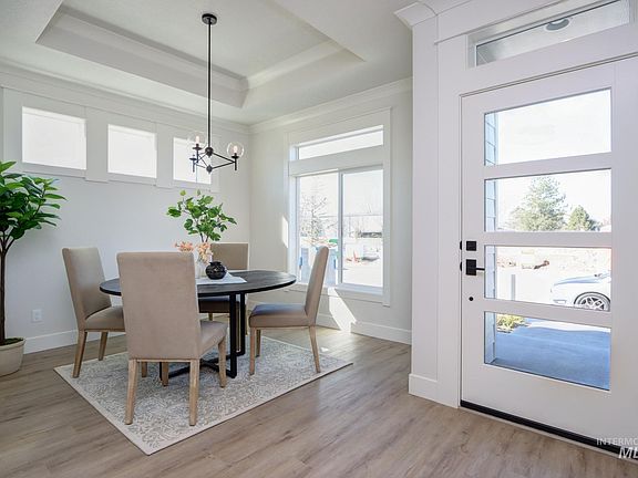 Less than 1 mile from the Village, Meridian's premiere entertainment and shopping destination and less than 5 minutes to I-84, and medical facilities and 15 minutes to downtown Boise. WOW-two suites PLUS Bonus/office or 3rd Bedroom with storage and its own bath ALL on 1 level with a finished and insulated three car garage. STORAGE is everywhere, built in desk too! Experience award winning design as seen in the kitchen complete with stainless steel appliances-5 burner cooktop oven/range, microwave and dishwasher. The butlers pantry has storage galore, even a countertop to hide used appliances to maintain the sleek, modern look of the custom cabinets in kitchen. Stunning interior architecture as seen in the varied ceiling heights, window size and placement, dramatic and extensive moldings. LOOK at the utility room with quartz counterspace, sink and cabinets. ALL cabinetry is custom built having soft close doors and drawers. Quartz, Tile & LVP surfaces throughout. Photos here are ACTUAL-MOVE in ready!