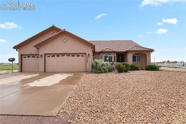 Move in ready Main Floor living at its best.....Situated on a flat Acre + lot in the highly desirable Pueblo West North of Highway 50. Just a few minutes to I-25 and Highway 50. This upgraded 3 bedroom, 2 bathroom, 3 car garage home is light, bright and extremely well maintained. Huge kitchen with vaulted ceilings and an open floorplan. Stainless Steel appliances, beautiful upgraded cabinets and granite counters. Bathrooms are also updated with granite. 2 sided fireplace with a gorgeous stone finish. THREE separate doors to get to the backyard covered porch. Main floor laundry room with cabinets, sinks and plenty of space. 2000 sq. ft. of open unfinished basement..... ready for your own personal design and touch. Air Conditioning and ceiling fans to keep you cool in the summer months. Large 3 car garage with storage. Parks, hiking trails and Pueblo Reservoir just minutes away. 30 Minutes to downtown Colorado Springs. This home is a MUST SEE!