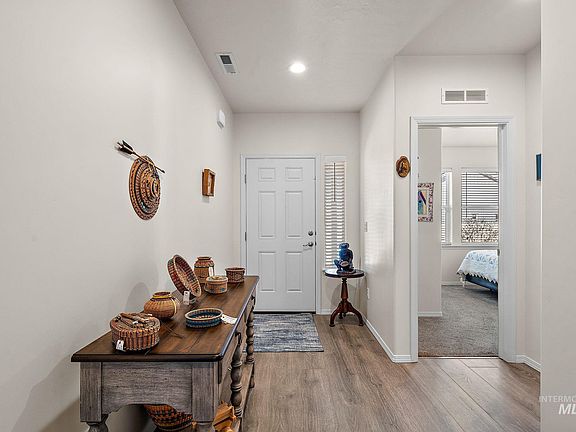 Welcome to Ashton Estates, ideally located minutes to the freeway and to the best of what Kuna and Meridian have to offer. This immaculate home has been well cared for and upgraded with expanded driveway, (2) Covertec patio covers, enlarged driveway, automatic patio shade, full drip system for the gardening lovers, water softener, alarm system and so much more. Stepping into the home you’ll pass by a custom storm door with privacy glass. A wide hallway escorts you to a massive living room with vaulted ceilings and wide open spaces. The kitchen is a chefs dream with granite countertops for days, a gas range, a coffee station, and massive walk in pantry. The master bedroom is stunning with ample space for a king-sized bed and all your belongings. The ensuite boasts dual granite vanities, soaker tub, walk-in shower and a large walk-in closet. The 2nd and 3rd bedrooms are perfect for your growing family or your private office. The fully fenced backyard is beautifully landscaped with drip lines....