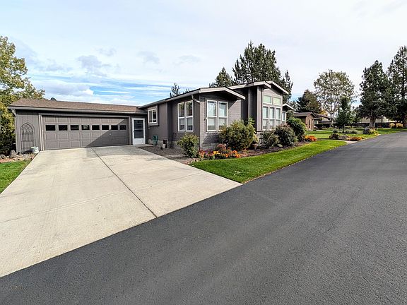 Beautiful, high-quality home in Bend's sought-after 55+ community, Snowberry Village. This spacious 2,363 sq ft home offers 3 bedrooms, including a main suite with two walk-in closets, lounge or office space and a large bath with walk-in shower, double vanity, and linen storage. Multiple living areas include a living room with gas stove, family room, and bright breakfast nook. The cook's kitchen features an island, wall oven, high-end gas range, refrigerator, and walk-in pantry. Dining area fits a large table and additional furnishings. Laundry room provides space for an extra refrigerator or freezer. Finished insulated garage with granite epoxy floor, sink, and room for two trucks. Large deck with retractable awning and lots of room for outdoor living. Many recent upgrades. Space rent $750/mo includes water, sewer, mowing, irrigation, debris pickup, snow removal, rec hall, and beautiful well-maintained grounds. RV storage available.