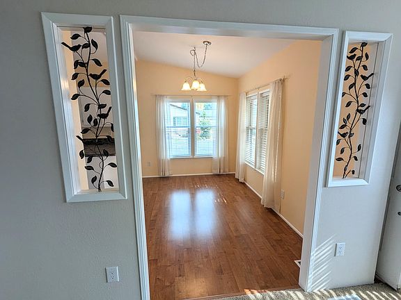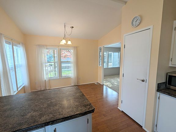 An inviting covered porch welcomes you into this comfortable 3 bed, 2 bath,1446 sf home in very desirable Snowberry Village 55+ Mhp. Well maintained with key updates since 2011 including a new roof and skylight, new laminate flooring in the kitchen and dining areas, and a new heat pump and water heater. The roomy kitchen features a new refrigerator, pantry and plenty of counter space. The primary bedroom is spacious, with the ensuite bathroom upgraded with new counters, sinks, faucets, and toilets. Also newer is the garage door opener and a repaved driveway. Sale is for the home only located in the highly sought-after 55+ community Snowberry Village, a beautifully maintained park close to shopping, restaurants, and medical facilities. The monthly space rent includes water, sewer, irrigation with automatic sprinklers, lawn mowing, yard debris pickup, street snow removal, and community center. RV storage and dump available.