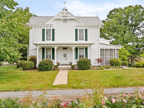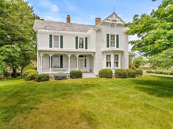 MORE ACREAGE HAS BEEN ADDED! See the attached proposed survey. This beautiful property is now listed with approximately 6.331 acres from a current survey. Included is a pole barn, machine shed, and bank barn, garden shed, & smoke house. The new survey now includes road frontage for possibly building an additional structure. Story book farm house with stunning views of the blue ridge mountains and farmland. Lots of original features to include gleaming pine floors, handcrafted woodwork and antique light fixtures in some of the rooms. Other features inside are 3 fire places, built-ins and 2 stairways. Freshly painted exterior, slate roof that was recently inspected and repairs done. A new well pump was installed in 2023. If you are looking for the opportunity for a small farm, Airbnb or an event venue this could be the place!