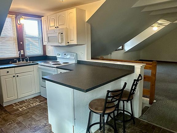 Adorable 1 Bedroom, Second Floor apartment with vaulted ceilings and new windows. Some storage room available. Water, Sewer and Trash included in rent. Includes 1 garage parking located on the right side of the garage. No Pets. No Smoking.